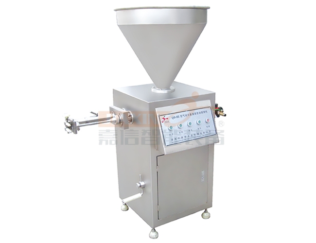 气动定量扭结灌肠机外形美观,小巧玲珑。与肉食接触部分及外包装全部采用不锈钢制造。易于清洗,定量可在20-1000克之间任意可调,误差仅有3克左右。气动定量扭结灌肠机,采用控制阀开关气缸来调整加工产品所属重量,通过操作面板上按钮达到控制各个程序动作的目的。